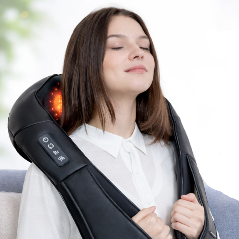 DeepRelief™ combina masajes tipo Shiatsu + calor terapéutico para liberar tensión muscular profunda desde casa, la oficina o incluso tu auto.